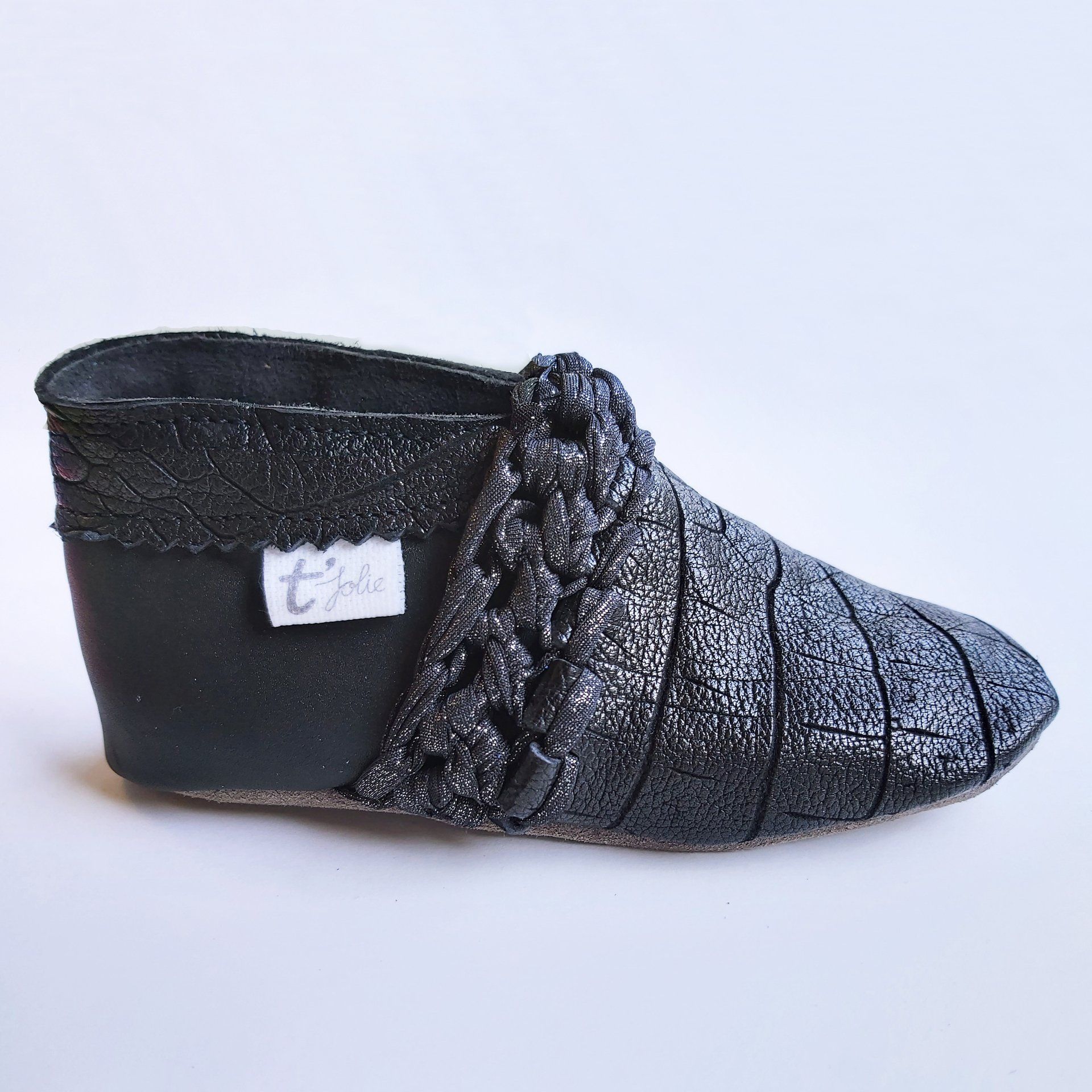 Je vous présente ma collection de chaussons pointures 19-21-23-25 en cuir ou tissu velours et crochet de tissu.