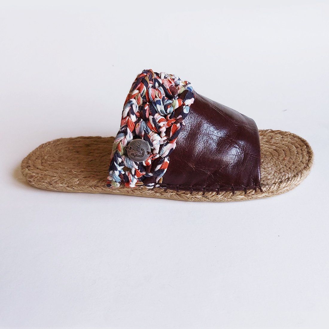Je vous présente ma collection de chaussures façon espadrilles en cuir de chèvre ou veau et crochet de tissu.